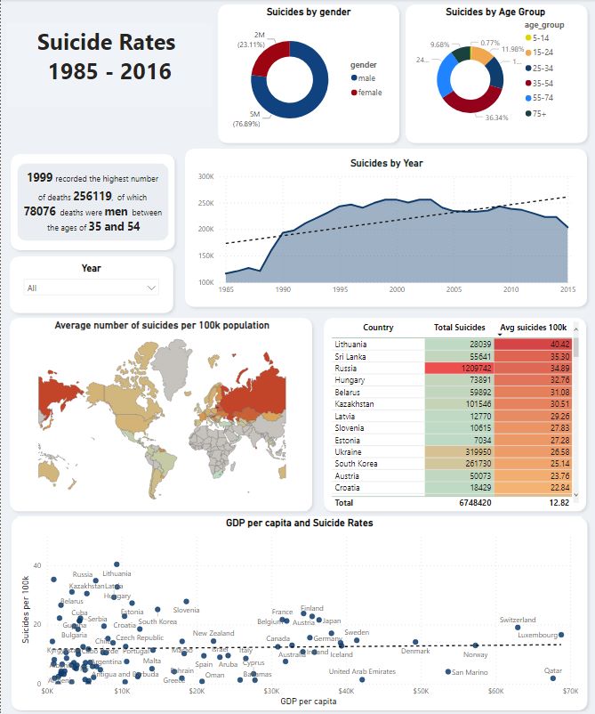 In this project, I analysed suicide rates from 1986 to 2016. The main goal of this project was to identify any patterns or trends in the data that may be useful for understanding the factors that contribute to suicide rates worldwide.